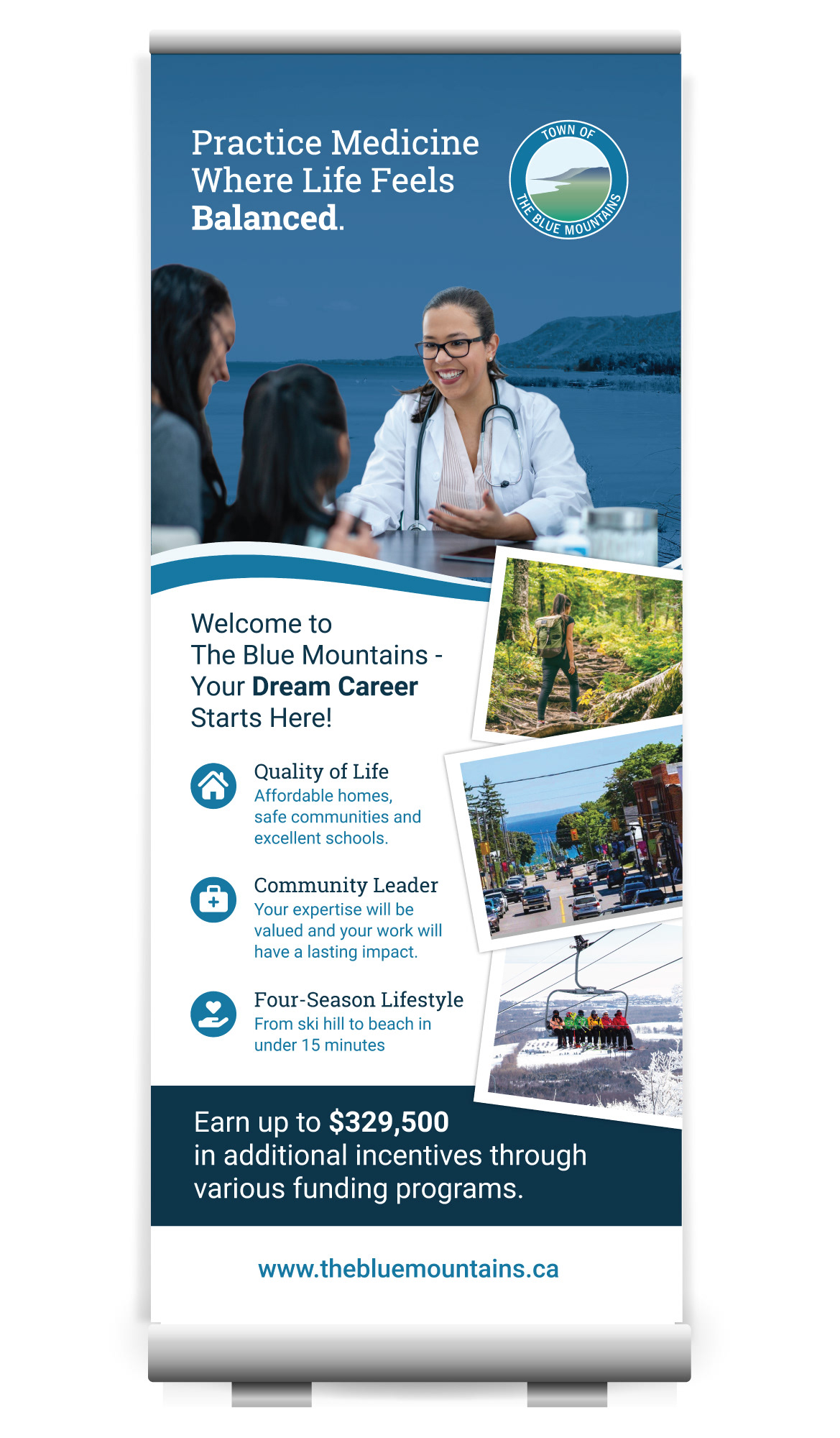 Supported the Town of The Blue Mountains by creating clear, engaging visual communications that help residents connect with their community. My work included municipal budget books, a resident welcome guide, newsletters, brochures, flyers, trail maps, interpretive panels, signage, banners, and social media ads. I worked closely with multiple departments to translate information into approachable, accessible designs, ensuring consistency across print, digital, and on-site materials while meeting branding and accessibility standards.